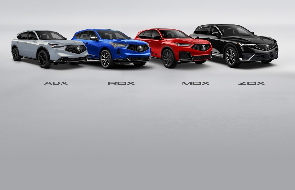 The Acura SUV lineup includes four exceptional models: the 2024 ZDX Premium All-Electric SUV, the 2025 ADX Premium Compact SUV, the 2026 RDX Premium Sport Crossover and the three-row 2026 MDX Premium Performance SUV. Discover the SUV that suits your lifestyle.